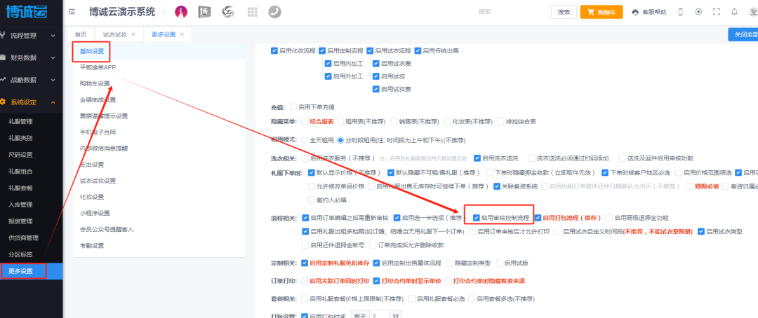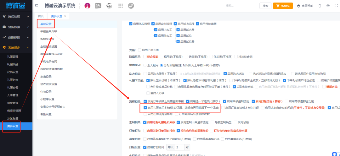 接上期讲解的流程设置,本期给大家详细讲一下,大流程下,更多细节功能的选择,一个好的工具不仅要能够契合线下实体店的功能需求,同时还要能够纠正不规范操作,起到监督管理的作用。下面详细给你解释下几个功能作用: