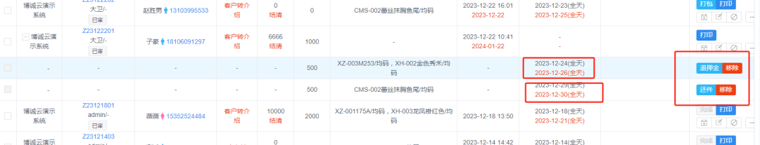 1、礼服多档期功能:开启礼服多档期功能,能够灵活记录管理需要份多次时间使用礼服的客户。例如订婚宴、结婚宴、回门宴的婚纱礼服同时下单,其中也可以单独取还婚纱礼服,管理更便捷。