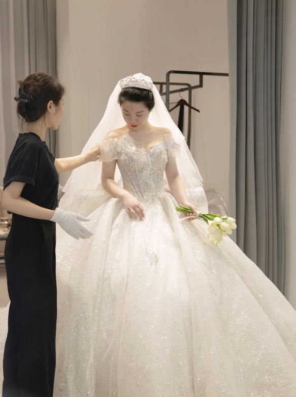 2、在客户进店初期,礼服师与新娘的沟通就格外重要。在谈单过程中,新娘心里原有预算也会随着礼服师的服务过程中体现出的“专业度”和“体验感”提升或者下调。