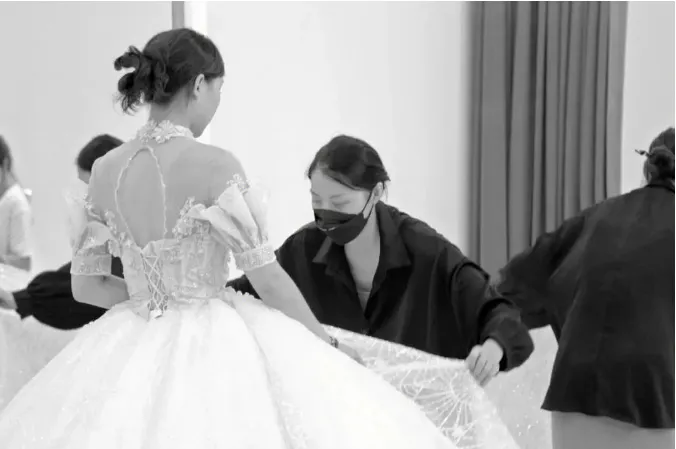 其次,由于新娘自身需求比较明确,自己对婚纱的要求已经足够明确,所以礼服师有些介绍对她来说是多余的,初期对销售人员会存在戒备心理;