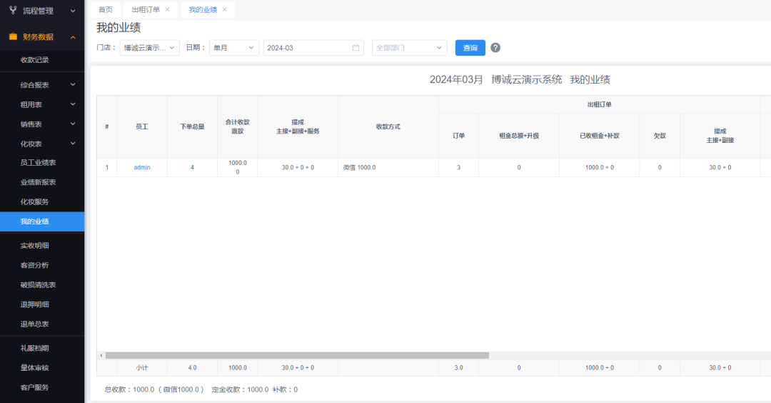爱尚礼服的业绩统计方式灵活而且很全面,能够满足大部分礼服馆的统计需求,在使用系统时,系统软件通过每个订单的生成以及流程的操作自动汇总对应人员的业绩报表。使用过程中,有以下注意点: