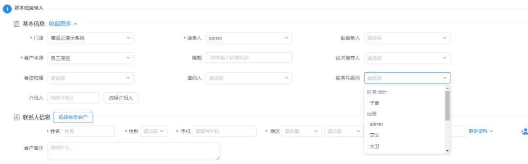 二、如有下单和服务分开,服务单独核算业绩,可另选择服务礼服师,以次数或业绩核算。