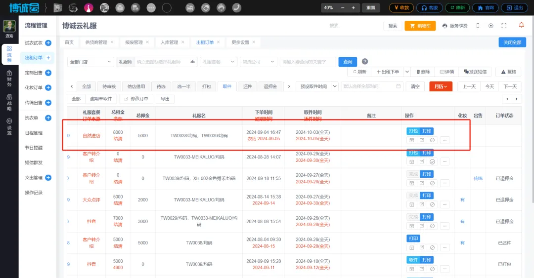 租借礼服取件后遇到各种原因造成婚期延期, #博诚云爱尚礼服系统里面如何操作取件后客户婚期延期的流程呢?