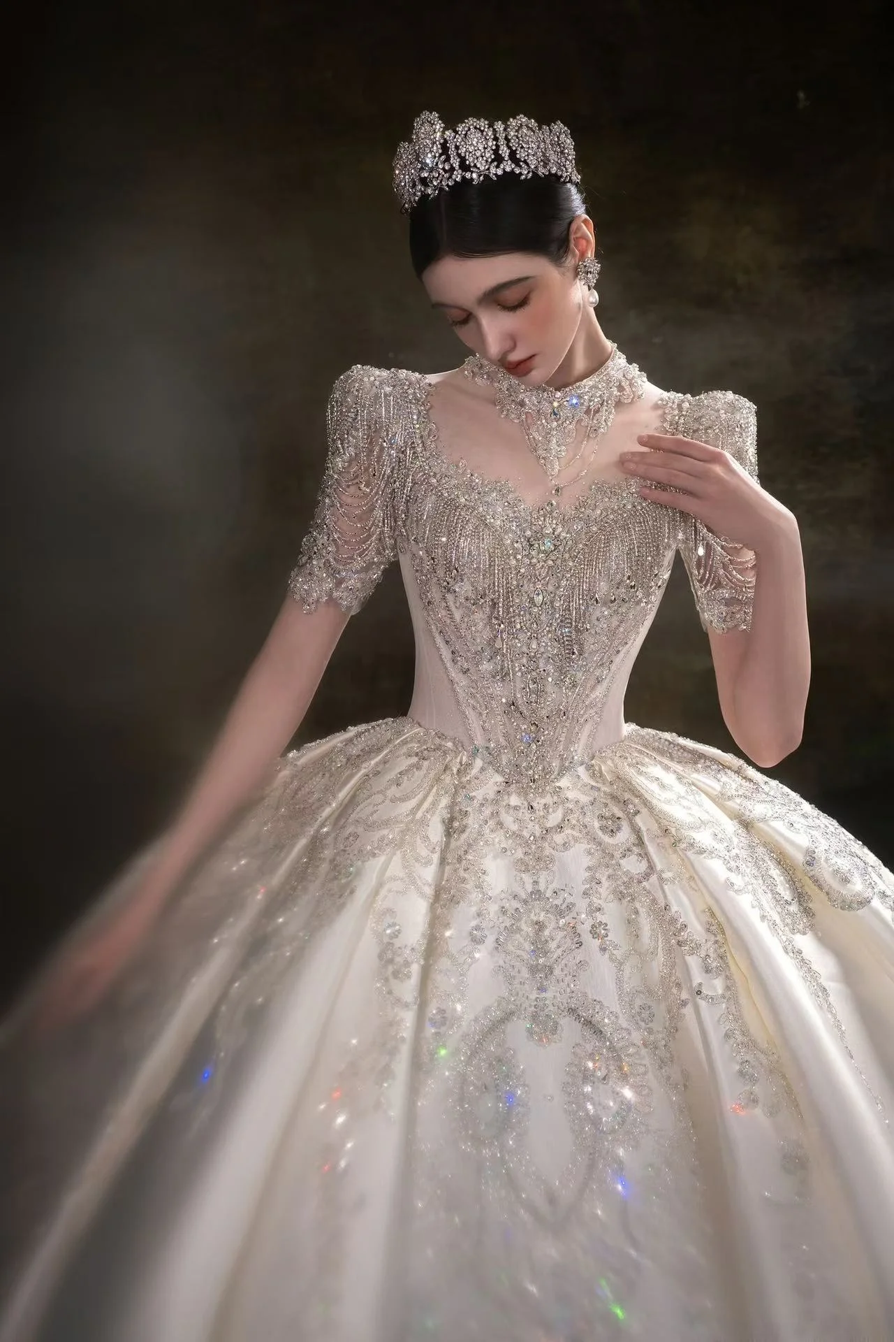 - 向客户展示我们的品牌背书,介绍款式,并引导新娘挑选她钟爱💞的婚纱。