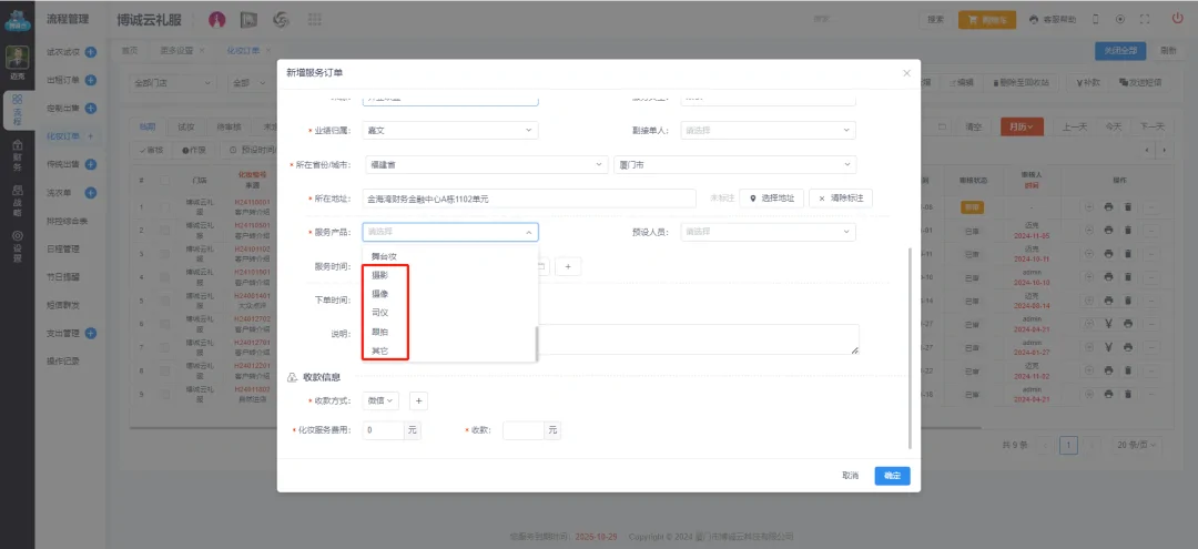 在当下礼服行业越来越多礼服馆推出多种服务产品,例如跟拍,摄像,各种妆容, 那在 #博诚云 爱尚礼服租赁系统上如何去下单,如何去安排预设工作人员,如何设置礼服馆常用的服务产品呢?