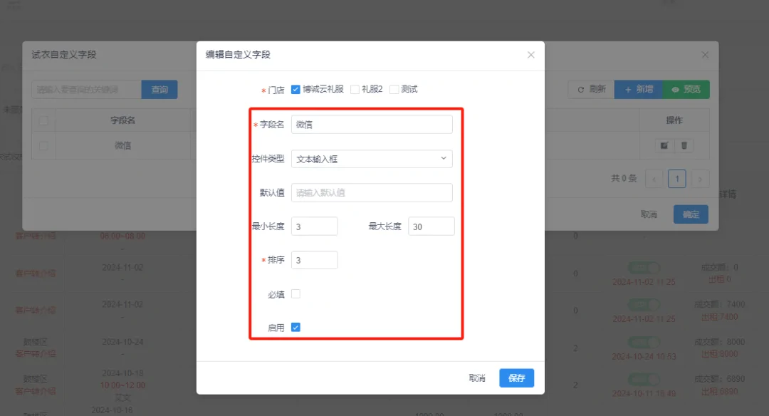 在试衣登记表页面设置自定义字段(登记表自定义)