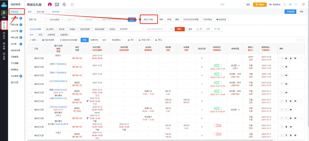 最近很多礼服馆反应当下各位新人有较高的防范意识,在平台咨询约试纱不愿提供手机号码,导致在 #博诚云爱尚礼服租赁系统 上无法录入客资,约试纱档期,那么小编根据各大礼服馆提供的建议和综合考虑当下社会现状,更新了登记试衣时手机号码非必填设置