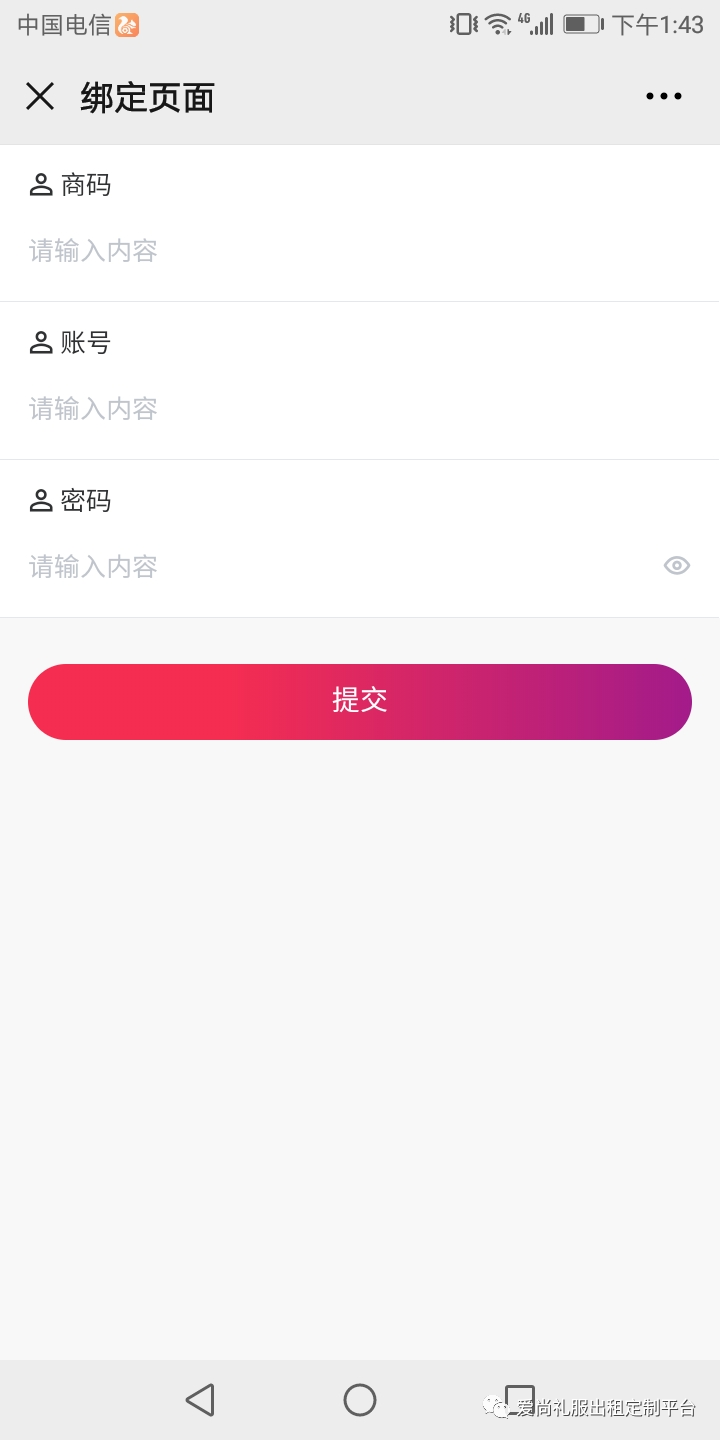 在员工有属于自己的账号前提下,他们需要扫描爱尚礼服系统公众号二维码进行关注,关注完以后点击微信办公,进行绑定自己的账号密码,这样就完成绑定公众号,以后都会在我们服务号上收到每天工作提醒。